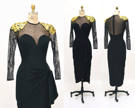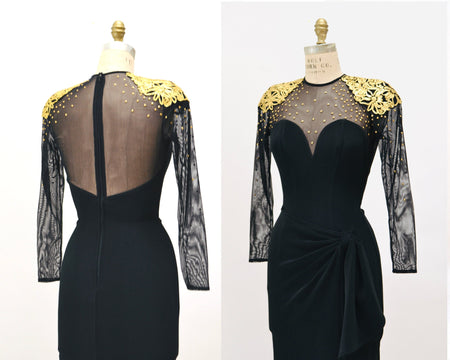 Quick Shop 90s Black Knit Dress Gold Black Mesh Illusion Body Con Dress Size Small Medium Tadashi // Vintage Black 90s Party Dress Whitney Houston 90s $250.00 Quick Shop