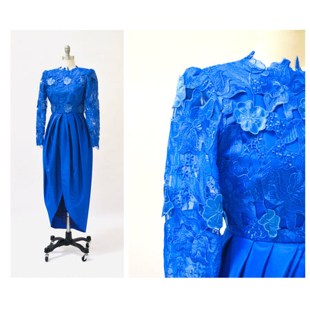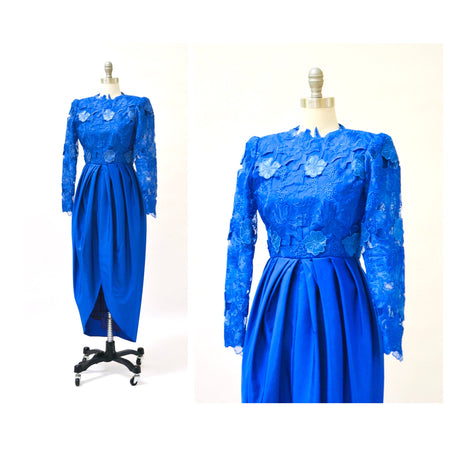 Quick Shop 80s 90s Vintage Blue Lace Bridesmaid Prom Dress Size XS Small Long Sleeve Dress// 80s 90s Prom dress Blue Flower Pageant Dress Gown $150.00 Quick Shop