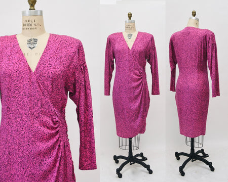 Quick Shop 80s 90s Vintage Pink Silk Wrap Dress Size Medium Large Fuchsia Magenta Silk dress// 80s 90s Vintage Pink Silk Dress long Sleeve Flora Kung $94.00 Quick Shop
