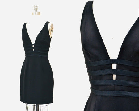 Quick Shop Vintage 90s Little Black Dress Black Cocktail Party Dress By Andrea Polizzi XS Small// Vintage 90s Sexy Party Cage Dress Black Neiman Marcus $104.00 Quick Shop
