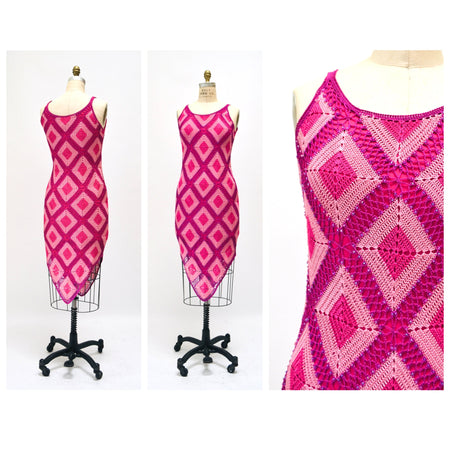 Quick Shop 90s 00s Y2k Vintage Pink Crochet Beaded Club Party Prom Dress Body Con Knit Dress Size Small Medium 00s Party Dress Medium $144.00 Quick Shop