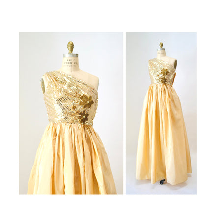 Quick Shop Gold Metallic 80's Prom Dress Size Small by Alyce Designs// Vintage Gold Metallic Sequin Pageant Party Gown Size Small $180.00 Quick Shop