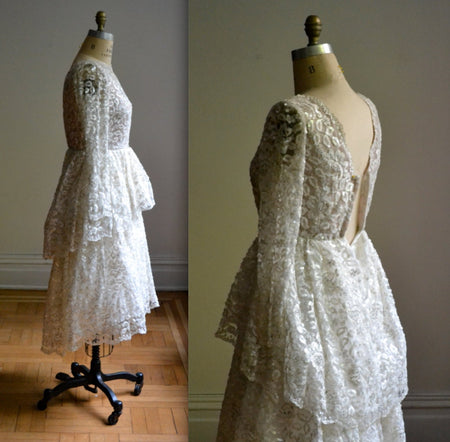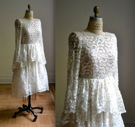 Quick Shop Exquisite Vintage White Lace Wedding Dress Sequin Beads Small// 70s 80s Vintage Sequin LaceParty Dress Long Sleeve Ruffle Wedding Dress $355.00 Quick Shop