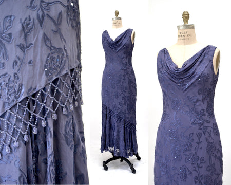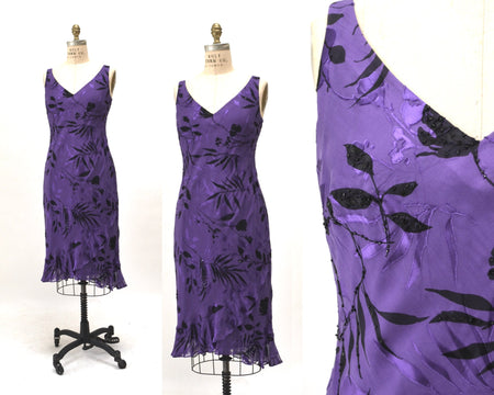 Quick Shop Vintage 90s 00 Y2K Bias Cut Silk Dress Purple floral print Beaded Silk Bias Cut Tank Dress Medium Large Silk Burnout Dress 90s party Dress $174.00 Quick Shop
