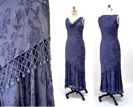 Quick Shop Vintage Silk Evening Gown Size Medium Grey SIlver// Vintage Beaded Evening Gown Silk Wedding Dress Bias Cut Silk By Antonio Gaul $195.00 Quick Shop