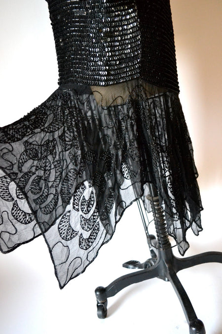 Quick Shop 80s 90s Vintage Black Sequin Beaded Dress Flapper Art Deco Party Dress Silk Medium// 80s does 20s Black Vintage Flapper Dress Long Sleeve $172.95 Quick Shop