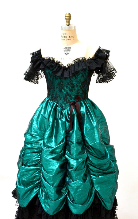 Quick Shop Vintage 80s Prom Dress XXS XS Metallic Green Black// 80s Metallic Party Dress Green Black Lace Southern Bell Pageant 80s Ball Gown Loralie $255.00 Quick Shop