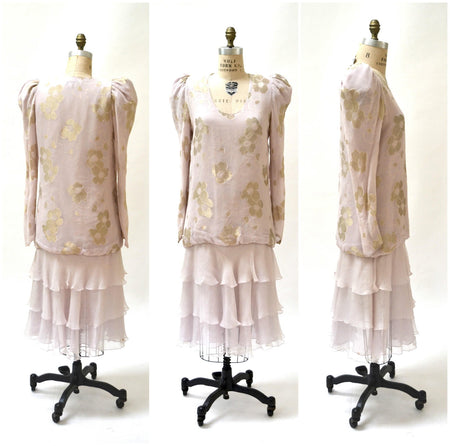 Quick Shop 80s does 20s Vintage Silk Dress Medium Pink Pastel Metallic Ruffles Flapper Inspired Silk by Judy Hornby Couture for I. magnin $103.25 Quick Shop