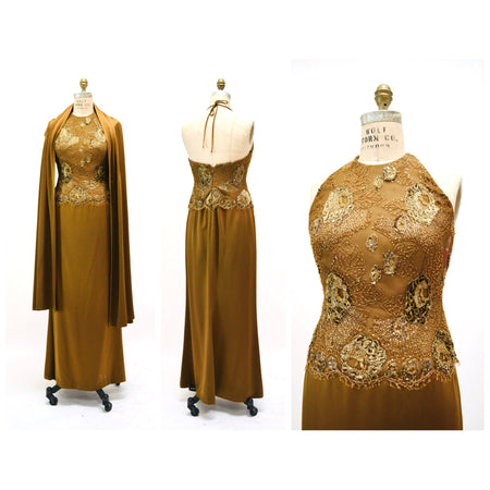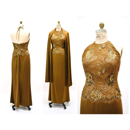 Quick Shop Vintage 90s 2000s Silk Evening Gown Dress Olive Green Brown Medium Silk Lace Halter Neck Dress Melinda Eng// Lace Silk Halter Dress Shawl $140.00 Quick Shop