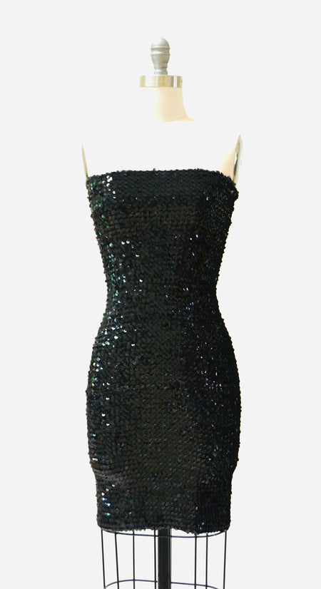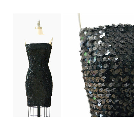 Quick Shop 80s 90s Vintage Black Sequin Dress Strapless Sequin Dress 80s Party Size Small Black sequin tube dress Body con Sequin dress XS Small $124.00 Quick Shop