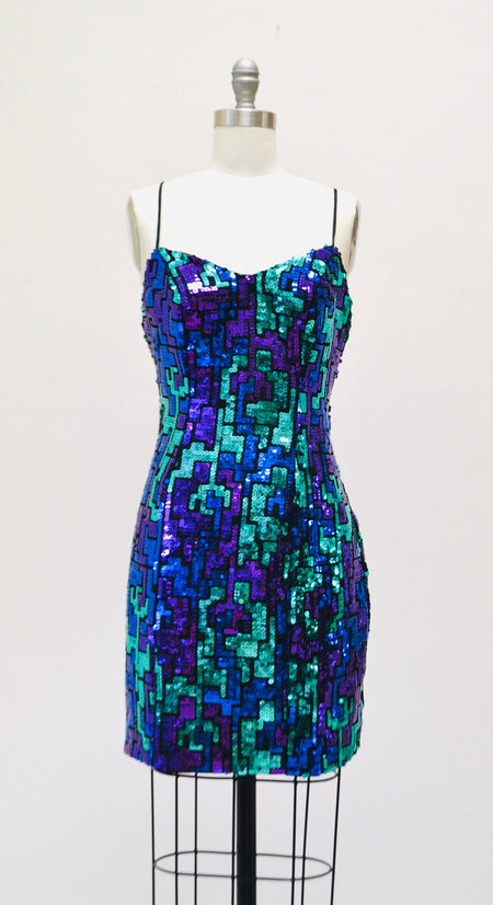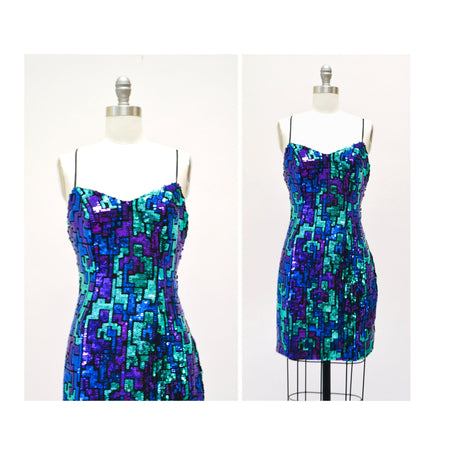 Quick Shop 90s Vintage Sequin Dress XS Small Metallic Dress Blue Purple Sequin Dress Tank// Vintage 90s Prom Dress Sequin Cocktail Formal Pageant Dress $190.00 Quick Shop