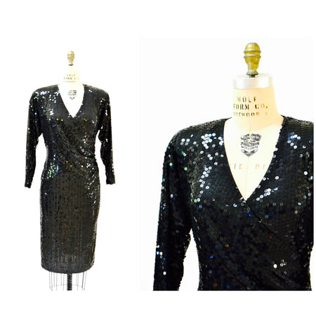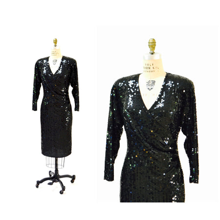 Quick Shop 80s 90s Vintage Black Sequin Dress Wrap Dress Medium Large// Vintage Black Sequin Dress Long sleeve 90s Party Sequin Dress medium large $140.00 Quick Shop
