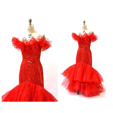 Quick Shop 80s Prom Dress Red Sequin Gown Medium Large// Vintage 80s Red Sequin Show Girl Pageant Drag Queen Prom Party Evening Gown Dress Large $370.00 Quick Shop