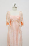 70s Vintage Alfred Bosand Pink Beaded Lace Dress and Capelet White Silver // Vintage White Lace Wedding Dress Evening Gown Beaded Shawl