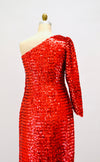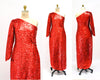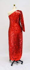 Home/Products/70s Vintage Red Sequin Gown Dress Red Sequin Showgirl One shoulder asymmetrical Dress Small Medium Pageant Jessica Rabbit Princess Costume