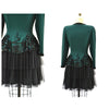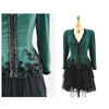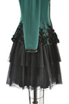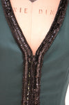 80s 90s Fabrice Vintage Green Black Beaded Party Dress Medium // Vintage 80s 90s Sequin Party Dress Crinoline Pleated Skirt Long Sleeves