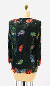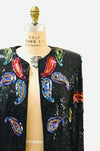 Vintage Black Sequin Jacket Paisley Beaded Jacket Medium Large // Vintage Black Sequin Jacket Paisley Metallic 80s 90s Glam Sequin Jacket