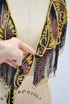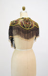 Vintage Gold Black Beaded Rhinestone Shawl Wrap Burlesque Wedding Flapper Gold Metallic Beaded Vintage Fringe Collar Shawl GOld Flapper