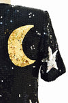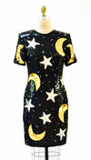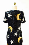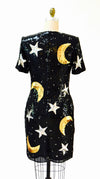 Vintage Sequin Dress Black Star Moon Medium Large By Modi// 90s Vintage Beaded Metallic Dress Stars Moons Pop Art Astrology Dress