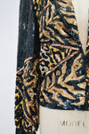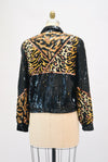 Home/Products/Vintage Sequin Jacket Black with Leopard Cheetah Animal Pattern// 80s 90s Vintage Black Sequin Beaded Jacket Animal The Icing Small Medium